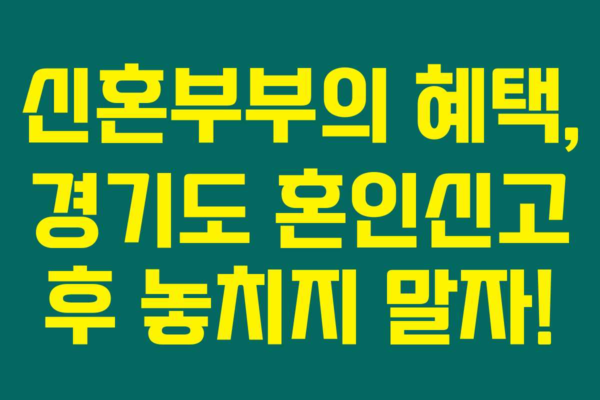 경기도에서 신혼부부로 시작하는 여러분께! 혼인신고를 통해 누릴 수 있는 지원 및 혜택들에 대해 알아볼까요? 혼인신고만 해도 다양한 주거와 재정 혜택이 기다리고 있습니다. 아래를 읽어보시면 정말 많은 지원 정책을 놓치지 않을 수 있습니다!