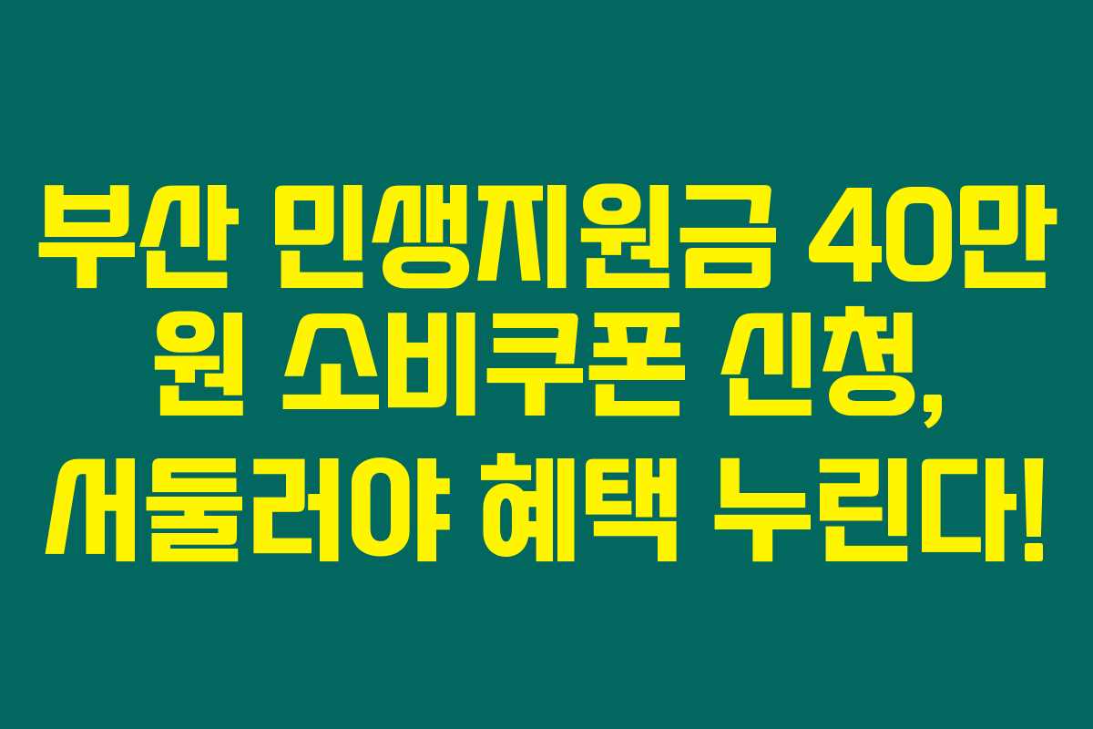 부산의 기초생활수급자라면 2025년 민생지원금 소비쿠폰으로 최대 40만 원의 혜택을 받을 수 있습니다. 이 기회 놓치면 후회할 수 있으니, 정부 공식 발표와 지역 공지를 계속 체크하며 신청을 서두르세요!