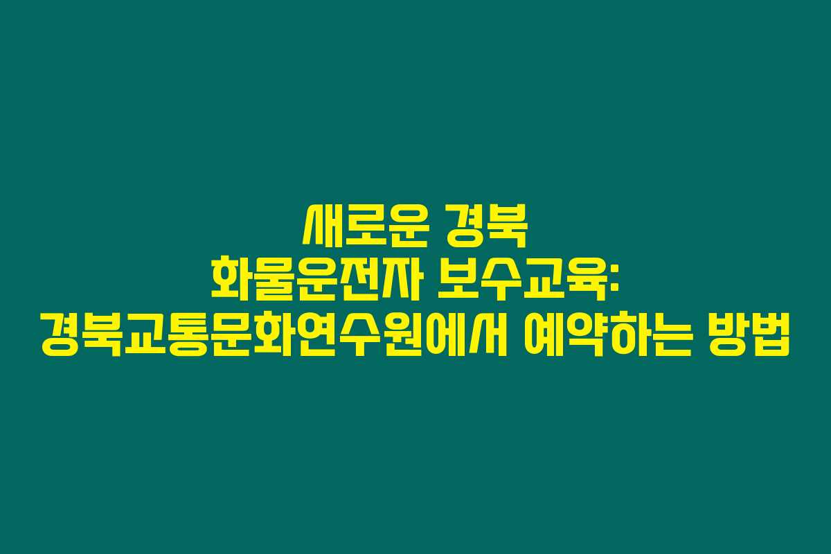 경북 지역 화물운전자를 위한 보수교육이 경북교통문화연수원에서 시행됩니다. 이번 교육의 예약 방법과 절차를 쉽게 소개할게요. 아래를 읽어보시면, 경북 화물운전자를 위한 필수 교육 정보를 상세히 알 수 있습니다.