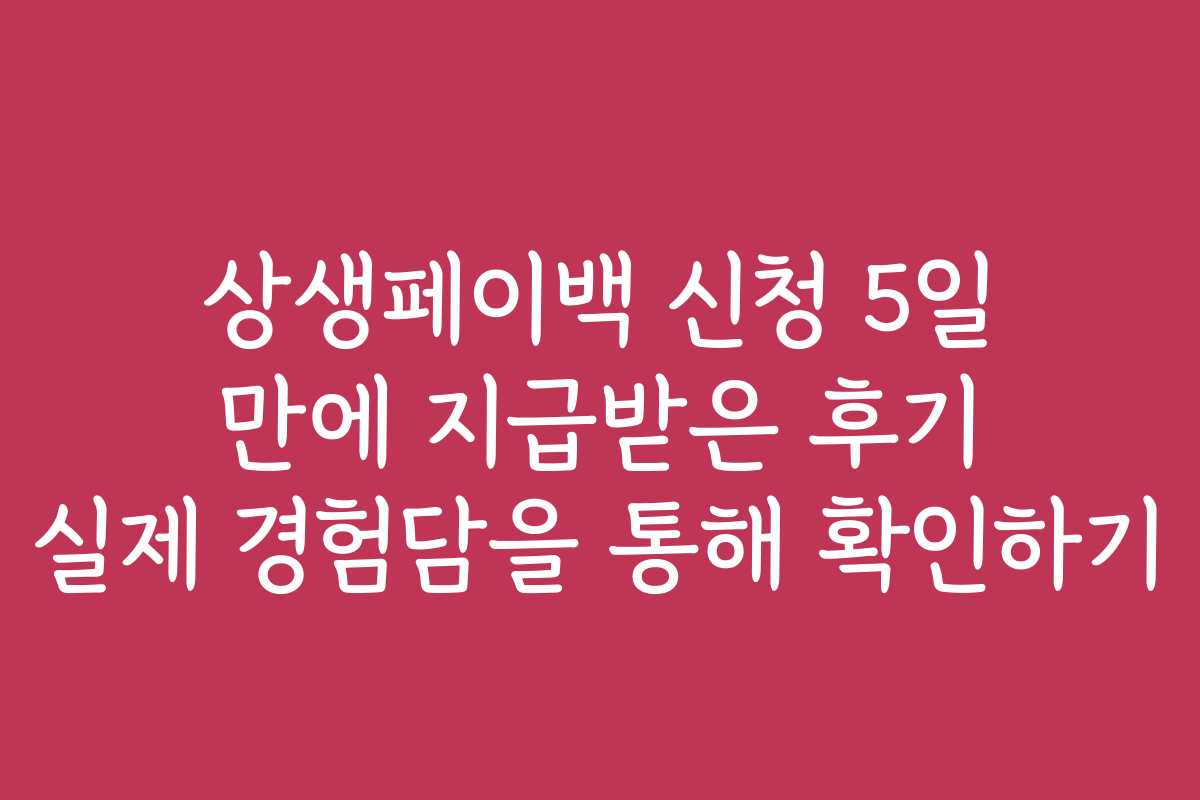 상생페이백 신청 후 5일 만에 지급받은 실제 경험담을 통해 많은 분들이 이 혜택을 누릴 수 있기를 바랍니다. 상생페이백을 통해 더 많은 금전적 혜택을 경험해 보세요!