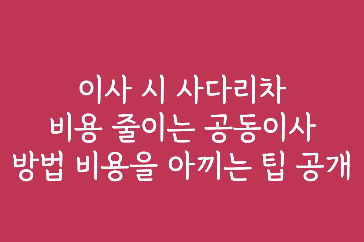 핵심·연관 키워드: 이사, 공동이사, 사다리차 비용, 비용 절감, 이사 팁, 사다리차 업체, 프로모션, 재정적 책임, 서비스 비교, 가격 협상, 비용 아끼기
