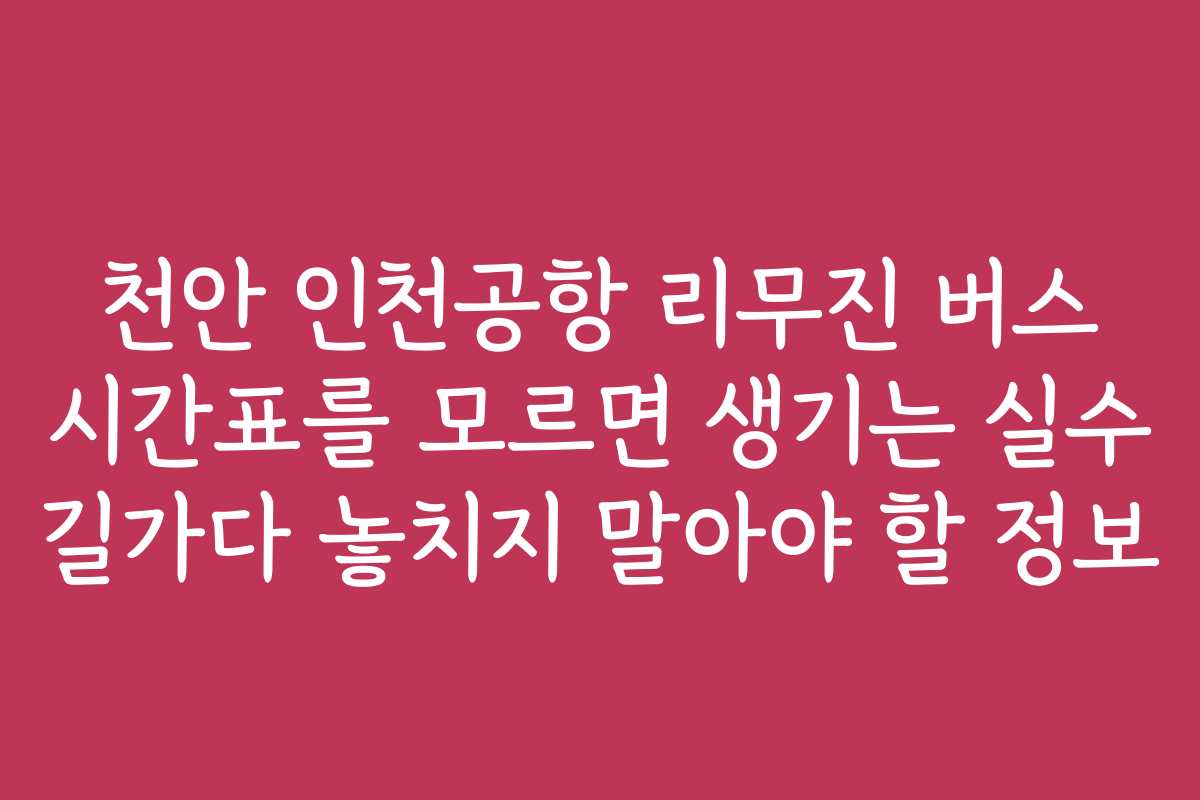 천안 인천공항 리무진 버스 시간표를 모르면 생기는 실수 길가다 놓치지 말아야 할 정보