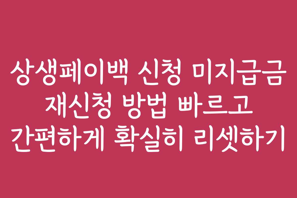 상생페이백 신청 후 미지급금이 지급되지 않아 애를 태우고 계신가요? 재신청이 어렵거나 복잡하다고 느끼셨다면, 걱정하지 마세요. 간편하게 리셋하고 재신청하는 방법을 이해하면 빠른 시간 안에 해결할 수 있습니다.