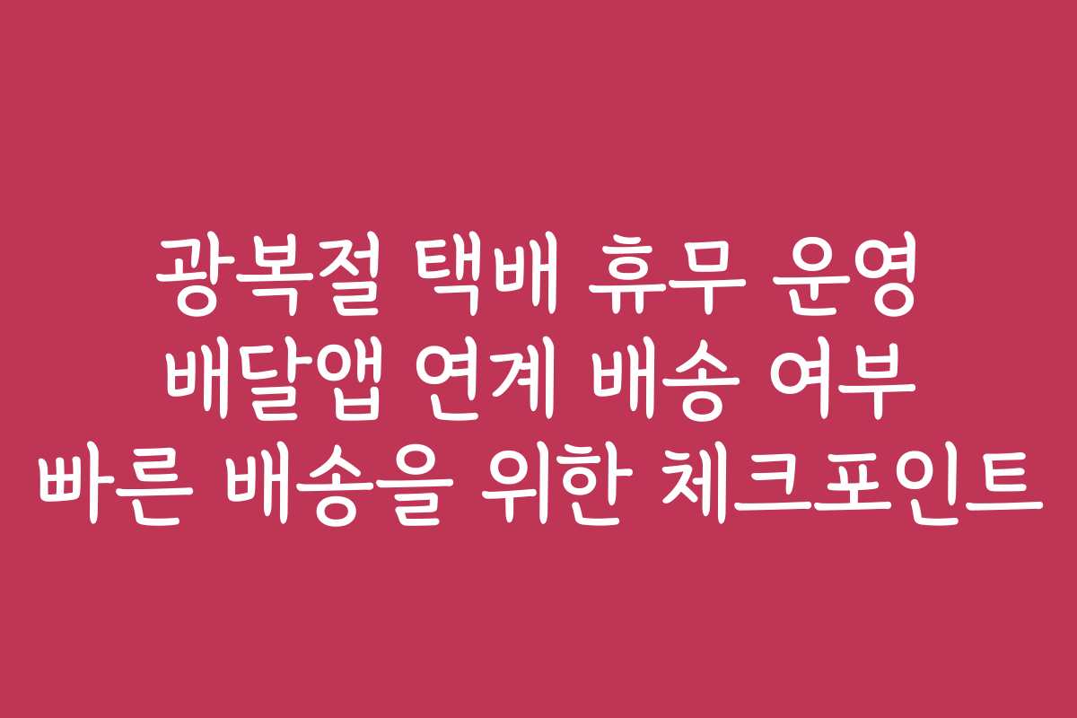 키워드: 광복절, 택배 휴무, 배달앱, 배송, 빠른 배송, 체크포인트, 공휴일, 서비스 비교, 물류 시스템, 배송옵션, 연계 서비스