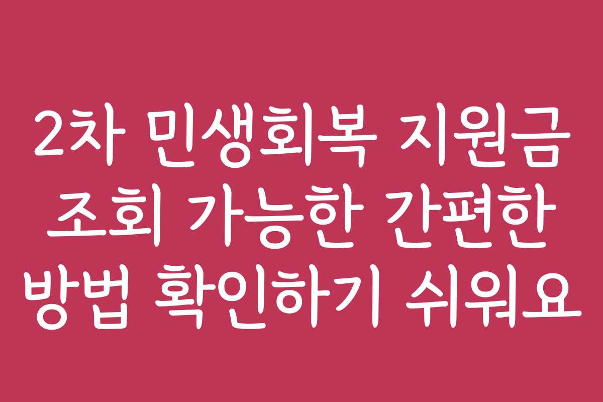 2차 민생회복 지원금은 COVID-19 팬데믹 이후 경제적 타격을 입은 시민을 돕기 위해 마련된 정부의 지원금입니다. 이 지원금의 목적은 생활 안정을 도모하고, 지역 경제를 활성화하는 것입니다. 많은 분들이 지원금을 기대하고 있지만, 과연 어떻게 쉽게 조회하고 신청할 수 있을까요?