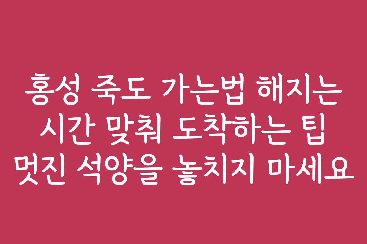 홍성 죽도는 아름다운 석양이 유명한 곳입니다. 하지만 해지는 시간을 맞춰 도착하지 않으면 그 멋진 풍경을 놓칠 수 있습니다. 어떻게 하면 최적의 시간에 도착할 수 있을지, 다양한 팁을 안내해 드리겠습니다.