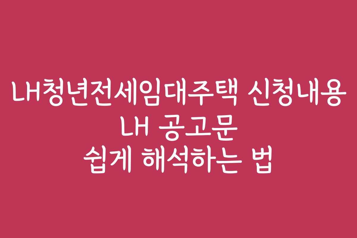 핵심 키워드: LH, 청년전세임대주택, 공고문 해석, 신청 방법, 주거 안정, 소득 기준, 신청 절차, 자주 묻는 질문, 온라인 신청, 서류 준비, LH 홈페이지