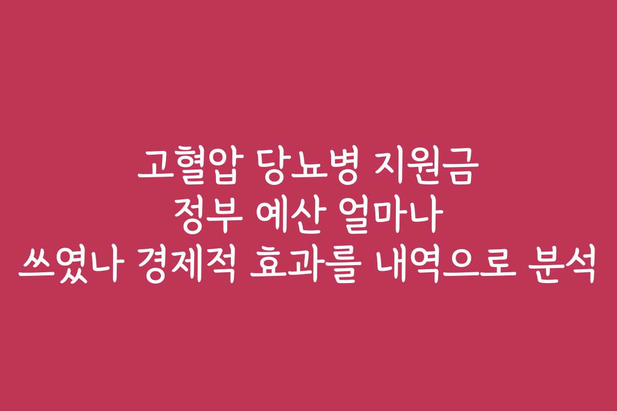 고혈압 당뇨병 지원금 정부 예산 얼마나 쓰였나 경제적 효과를 내역으로 분석