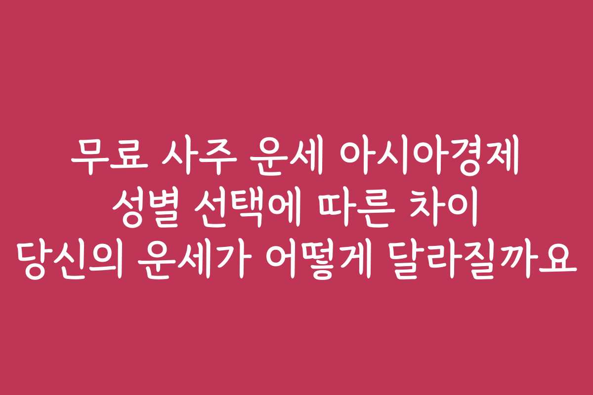 무료 사주 운세 아시아경제 성별 선택에 따른 차이 당신의 운세가 어떻게 달라질까요