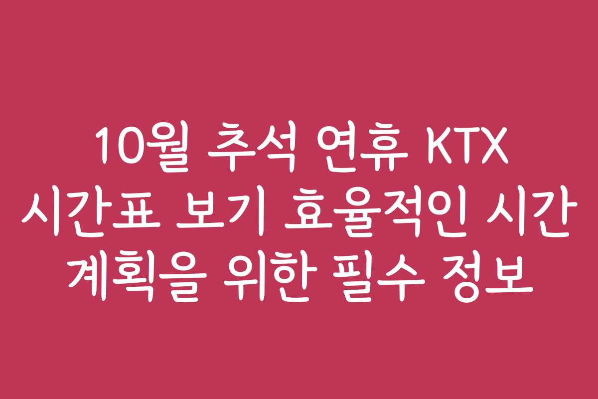 10월 추석 연휴 KTX 시간표를 미리 확인하고 효과적인 계획을 세우면 스트레스를 줄이 과 유익하고 잊지 못할 추억을 남길 수 있습니다. 계획을 잘 세우고 연휴를 의미 있게 보내세요!