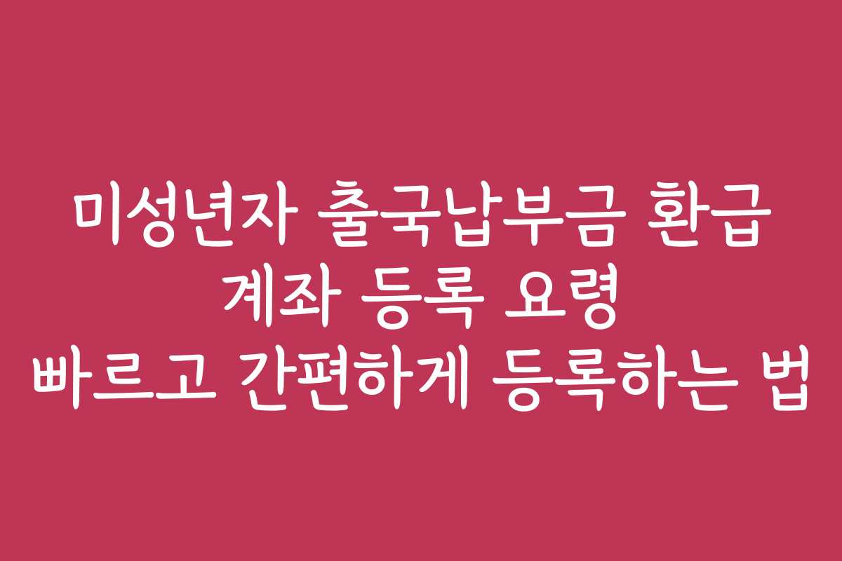 핵심 키워드: 미성년자, 출국납부금, 환급, 계좌 등록, 준비 사항, 법정대리인, 처리 기간, 수수료, 환급 요청, 금융기관, 사용자 후기