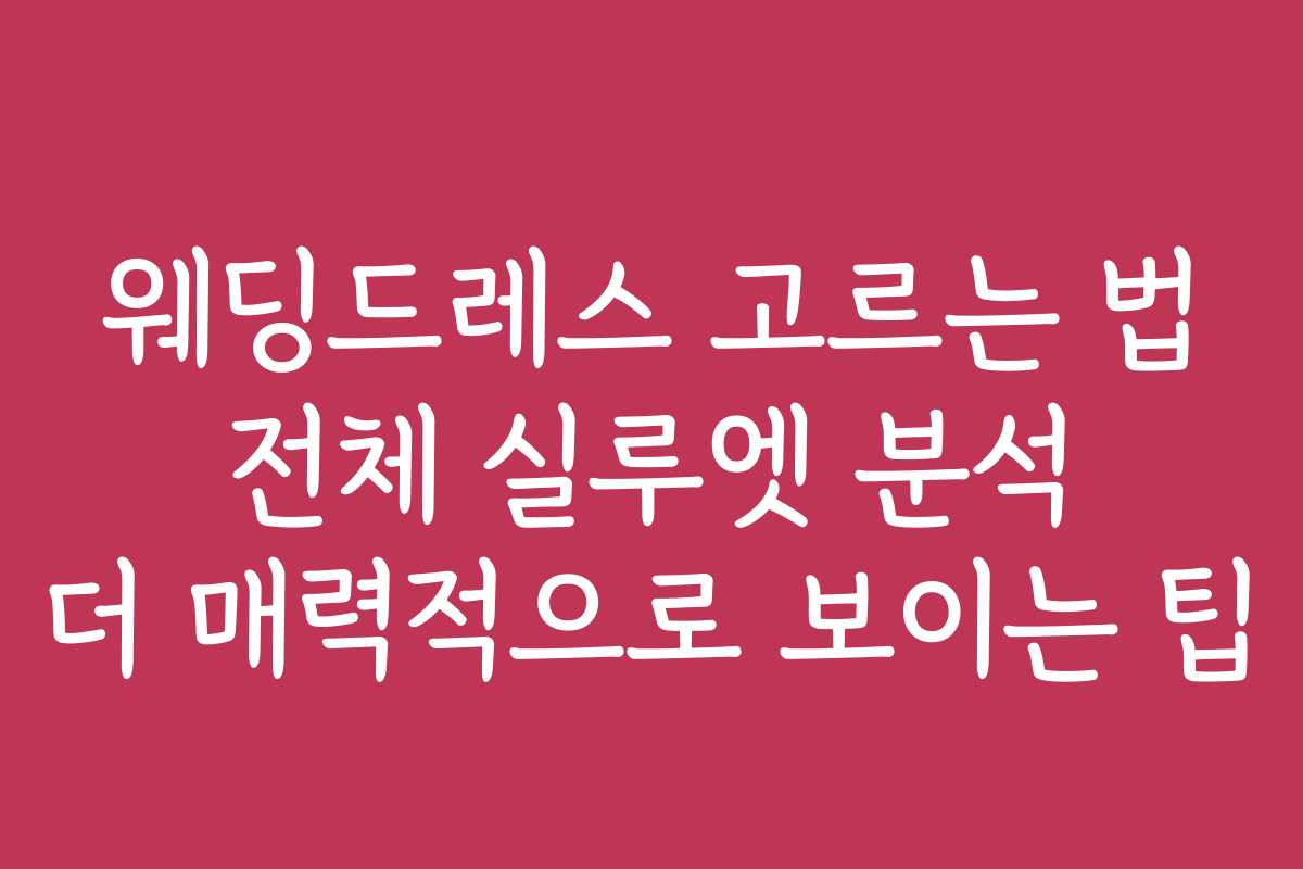 결혼식을 준비하면서 가장 중요한 요소 중 하나인 웨딩드레스. 하지만 다양한 디자인과 실루엣 때문에 어떤 드레스를 선택할지 고민하시는 분들이 많습니다. 이 글에서는 웨딩드레스의 다양한 실루엣을 분석하고, 더 매력적으로 보일 수 있는 팁을 제공할 예정입니다.