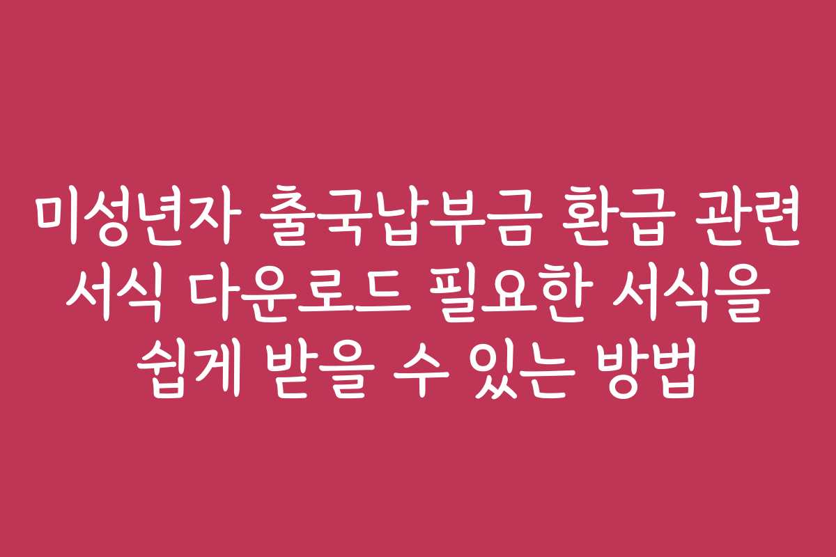 핵심 키워드: 미성년자 출국납부금 환급, 서식 다운로드, 환급 신청, 출국 증명서, 정부 포털, 서식 종류, 접근 방법, 사용자 후기, 고객센터 문의, 지원 서식, 환급 처리 기간.