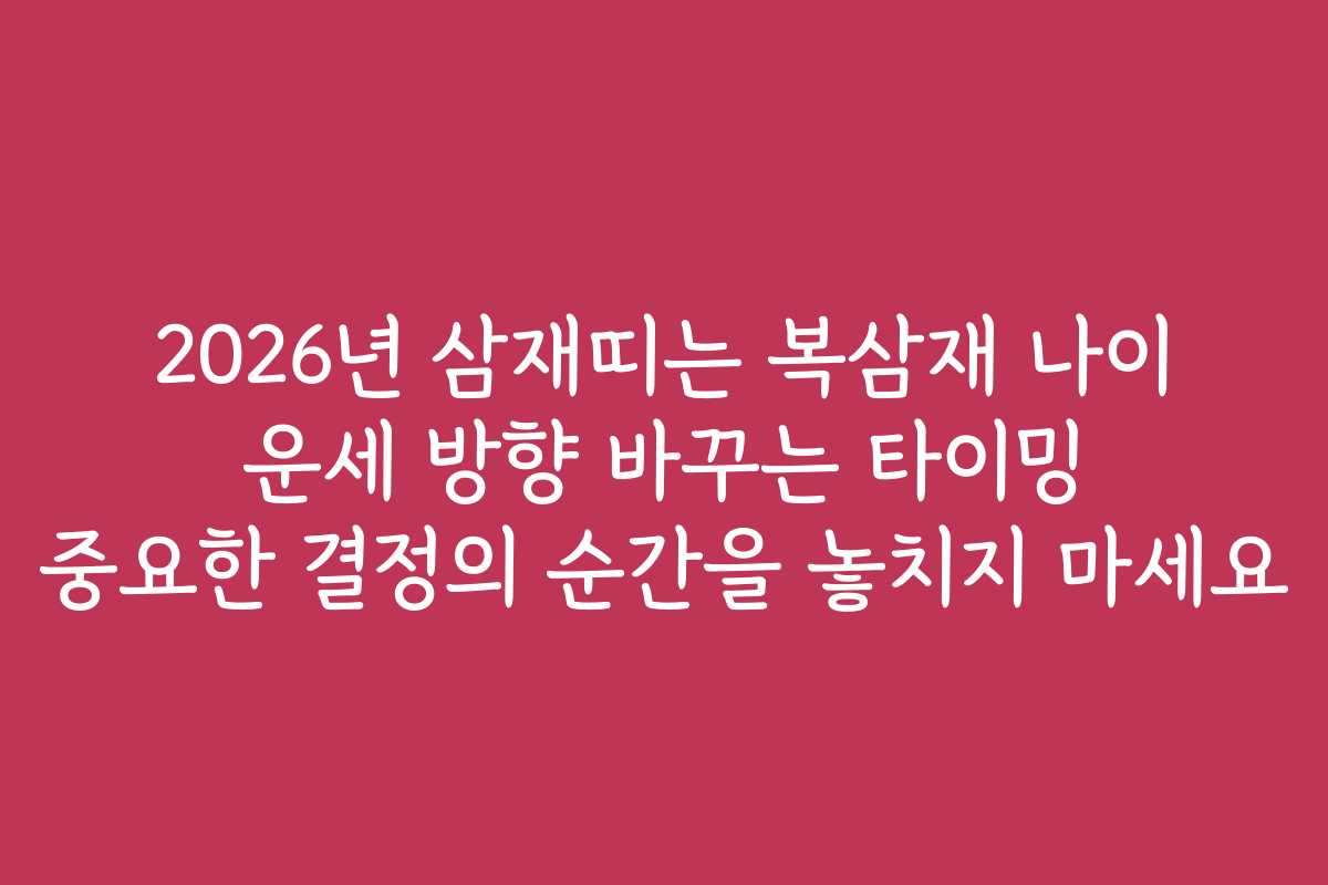 2026년은 특별한 해입니다. 특히 삼재띠에 해당하는 분들에게는 더욱 의미 있는 변화를 겪을 해가 될 것입니다. 이 블로그에서 삼재띠의 운세와 함께 복삼재 나이, 그리고 중요한 결정의 타이밍을 잊지 않고 활용하는 방법을 알려드릴게요.
