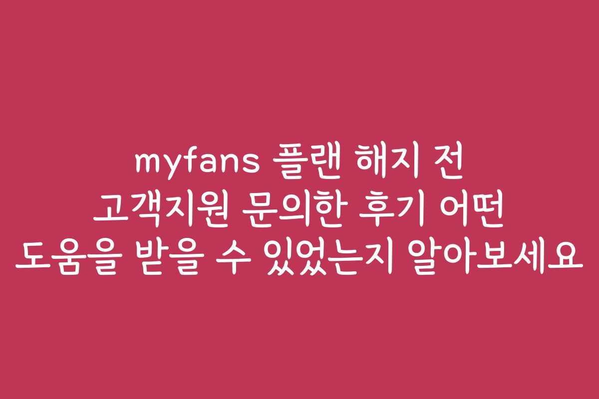 myfans 플랜 해지 전 고객지원 문의한 후기 어떤 도움을 받을 수 있었는지 알아보세요
