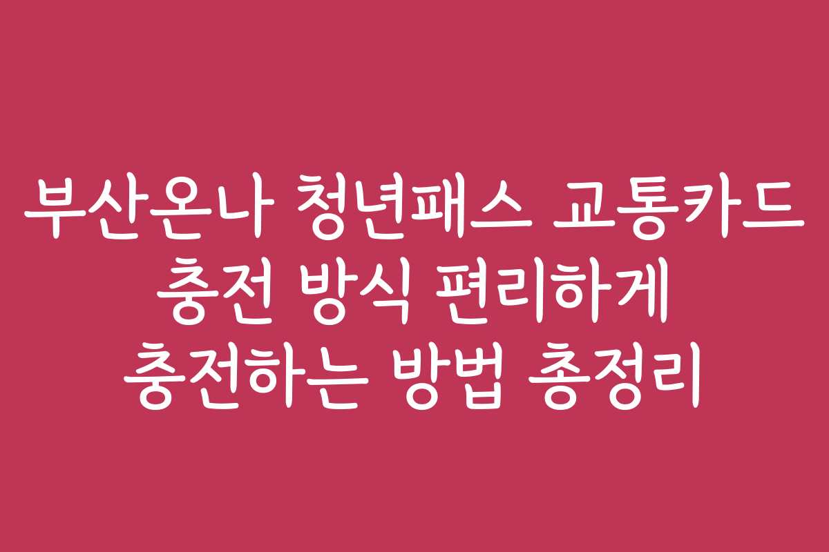 부산온나 청년패스, 교통카드, 충전 방법, 모바일 앱, 온라인 충전, 은행 ATM, 편리한 충전, 청년패스 후기, 서비스 비교, 청년층 교통비 절약, 부산 대중교통