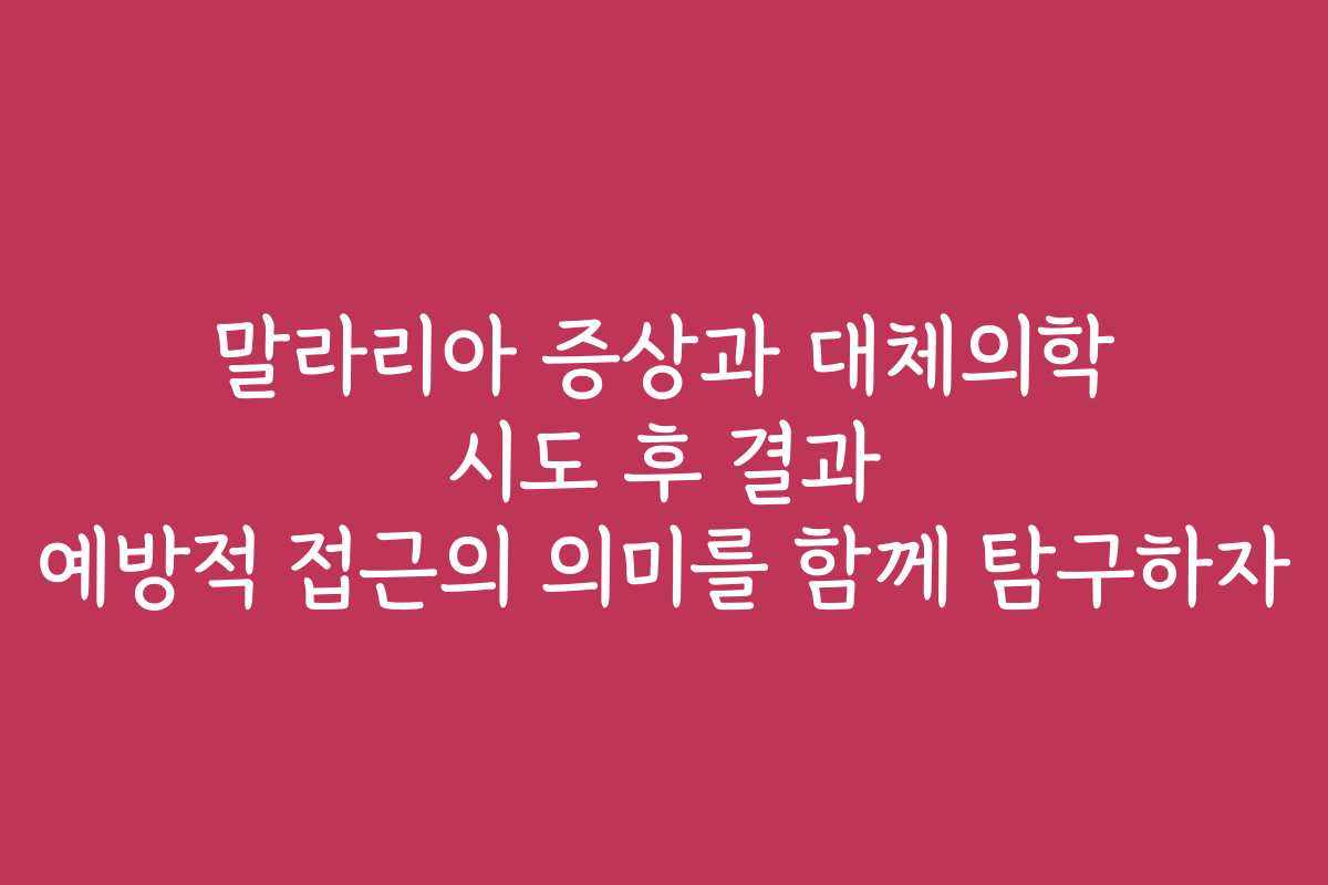 말라리아 증상과 대체의학 시도 후 결과 예방적 접근의 의미를 함께 탐구하자