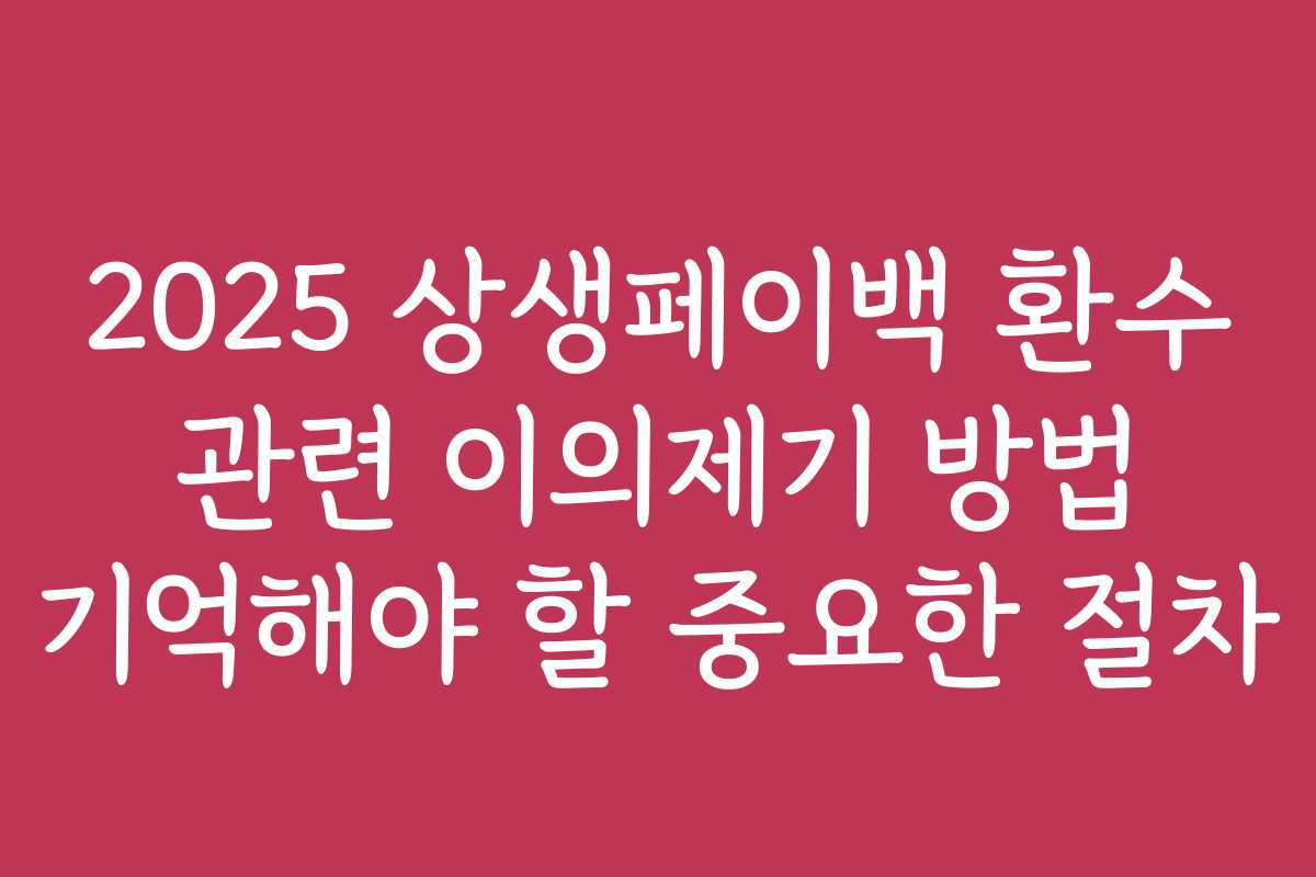 키워드: 2025 상생페이백, 환수, 이의제기, 절차, 서류, 대응법, 사례, 팁, 질문, 서비스 상담, 경제적 권리